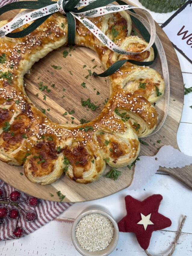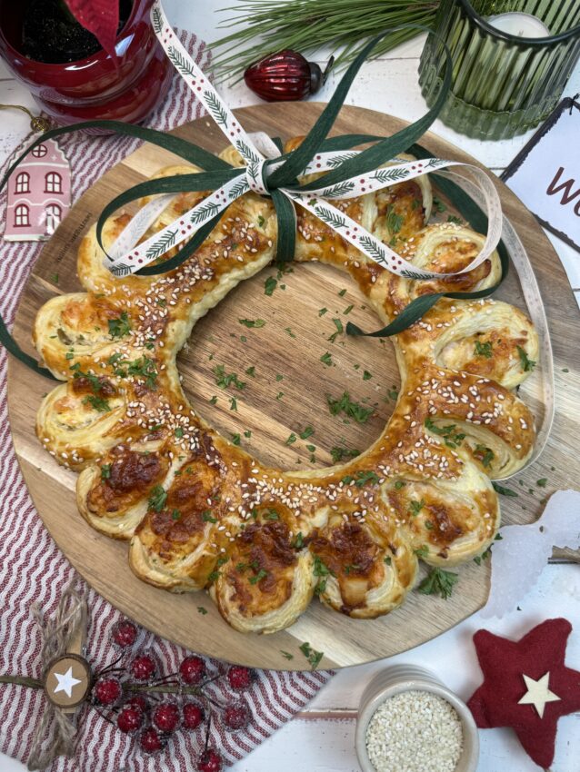 Goldbraun gebacken, herrlich knusprig und gefüllt mit feinem Lachs – dieser Blätterteigkranz gehört für mich einfach zur Weihnachtszeit.
