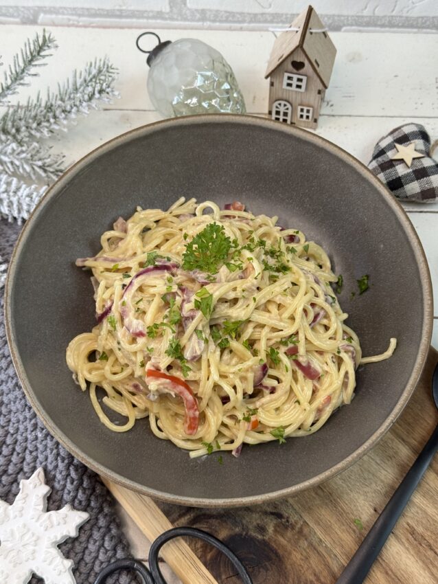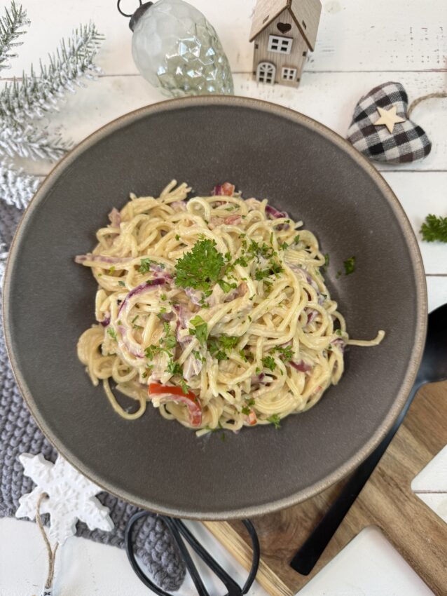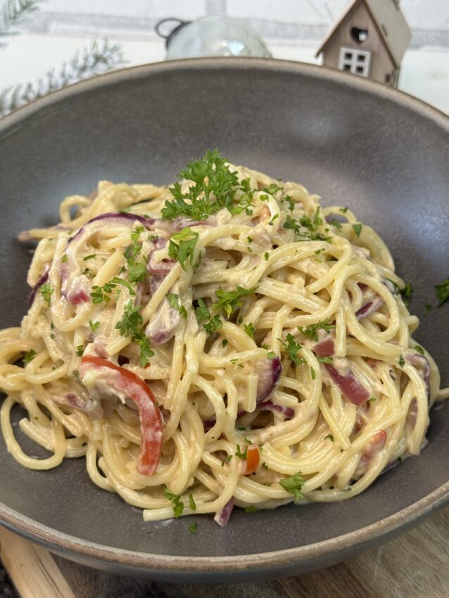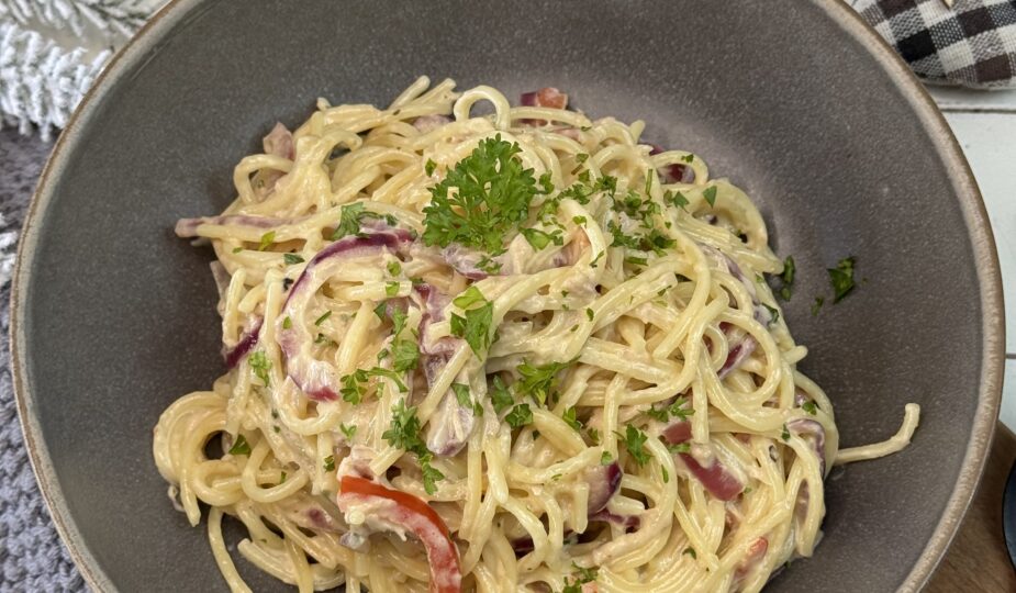 Zarte Zwiebeln, Paprika, Thunfisch und eine cremige Sauce mit einem Hauch Zitrone – perfekt für die Alltagsküche und genau richtig an Tagen, an denen man es unkompliziert mag.