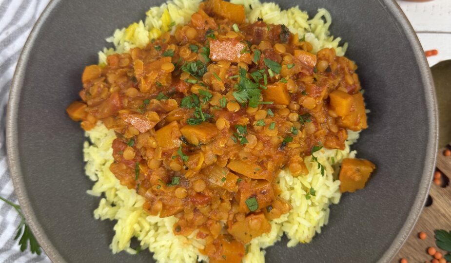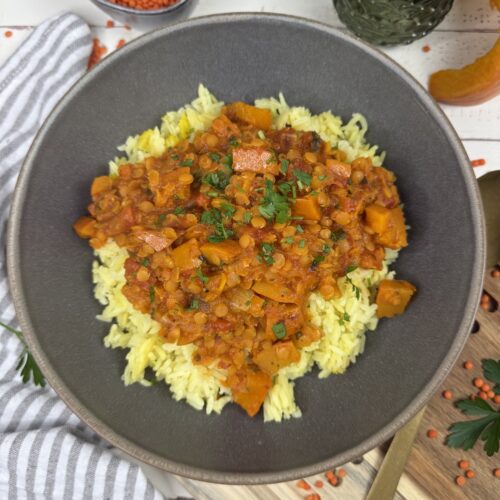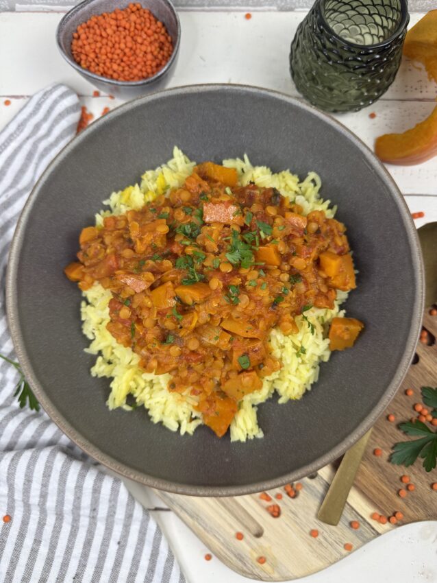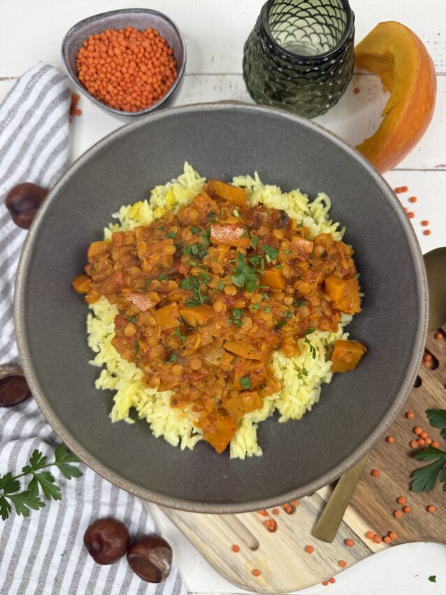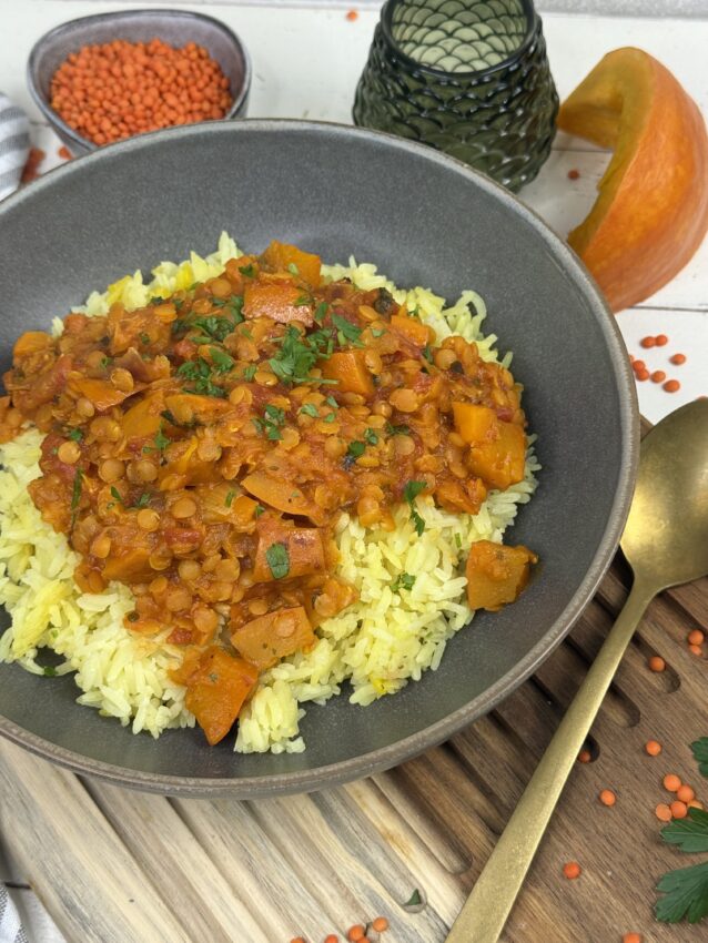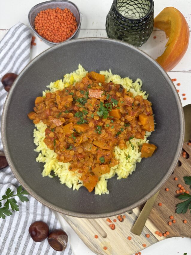 Kürbis-Curry mit roten Linsen und Kokosmilch