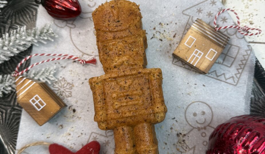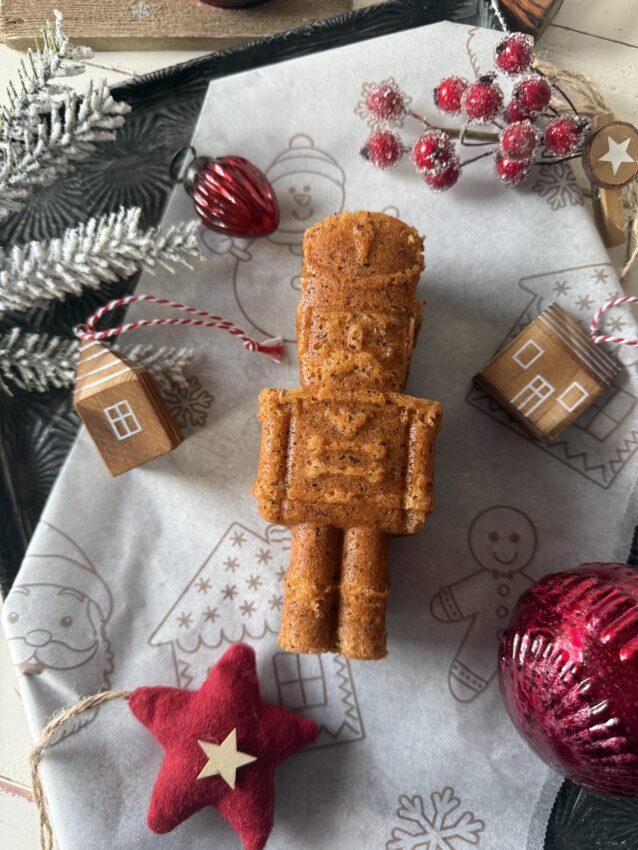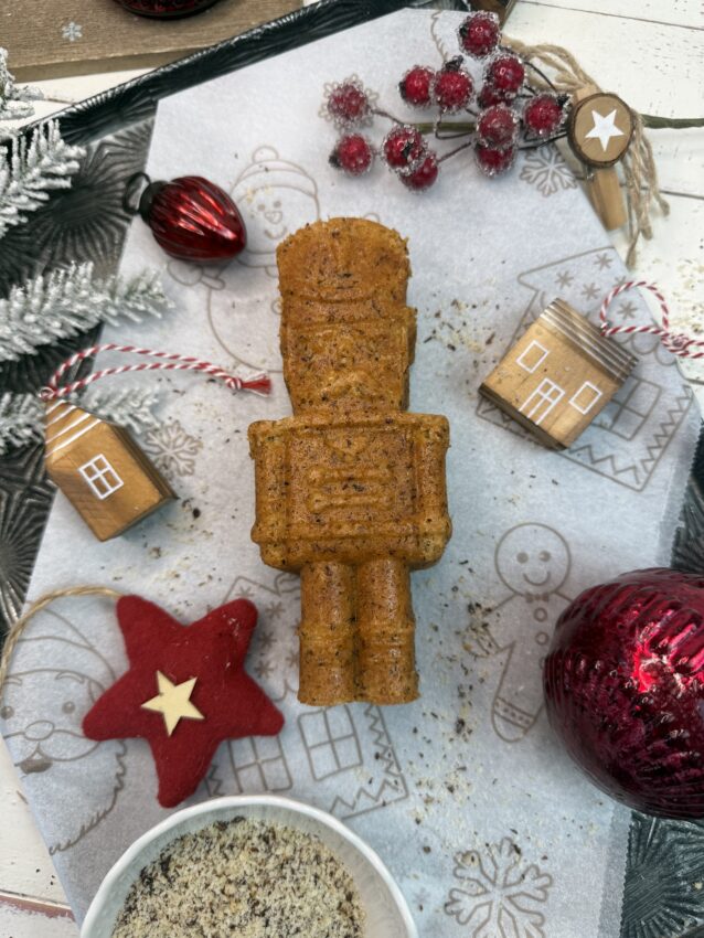 Dieser kleine Nussknacker ist nicht nur ein Kuchen, sondern ein Stück Adventsmagie: außen goldbraun, innen herrlich saftig, mit gemahlenen Nüssen und einer guten Prise Weihnachtsliebe.