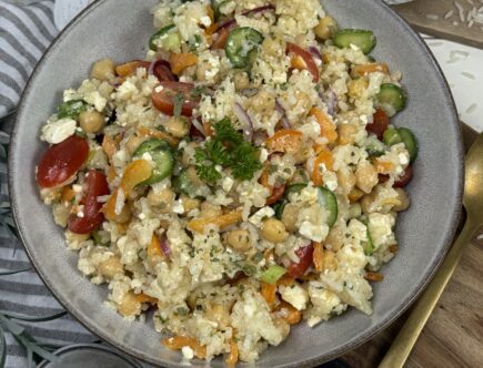 Mediterraner Zitronen-Reissalat mit Kichererbsen, Tomaten und Feta