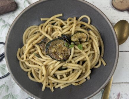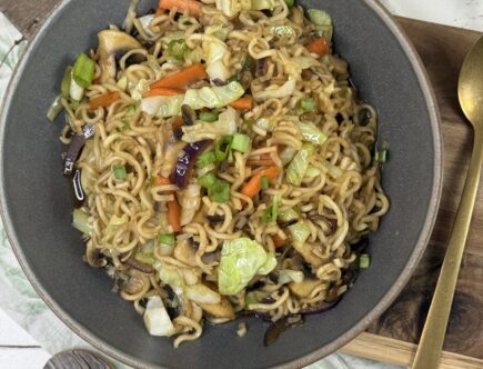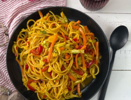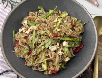 Gebratene Nudeln mit Spargel und Cashewkernen