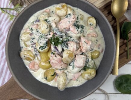 Rezepte VegetarischGnocchipfanne mit Lachs und Spinat in Frischkäsesaucevon PetraHinterlasse einen Kommentar zu Gnocchipfanne mit Lachs und Spinat in Frischkäsesauce