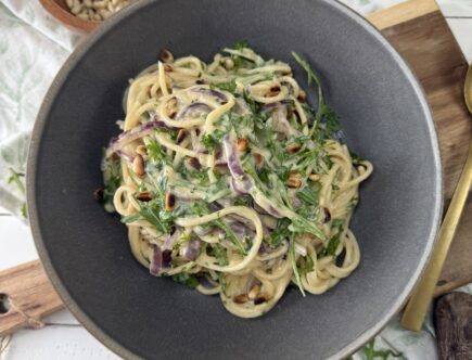 Rezepte VegetarischZitronen-Pasta mit Rucolavon PetraHinterlasse einen Kommentar zu Zitronen-Pasta mit Rucola