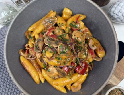 Schupfnudelpfanne mit Champignons und Paprika