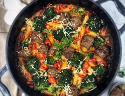 Gemüse-Penne-Auflauf mit Hackbällchen