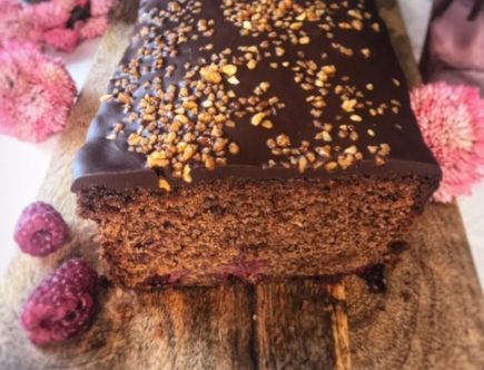 Schoko-Karamellkuchen mit Himbeeren