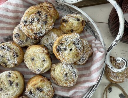 Scheiterhaufen mit Äpfeln und Schneehaube