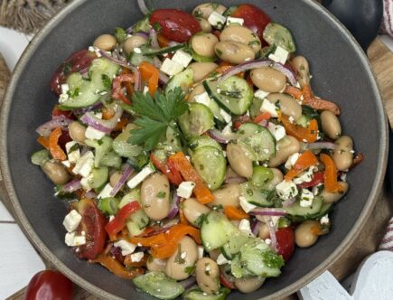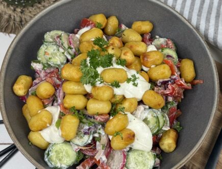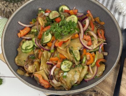 Knuspriger Kartoffelsalat mit Paprika und Zwiebeln