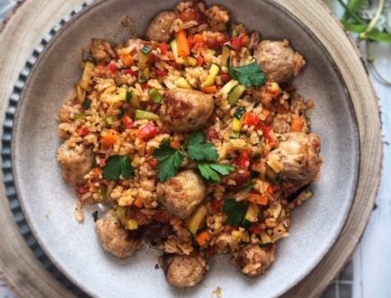 Reis-Gemüse-Pfanne mit Hackbällchen