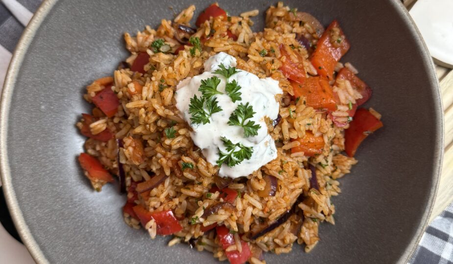 Ein schnelles, aromatisches Gericht für jeden Tag: Süße Paprika, glasig gebratene Zwiebeln und lockerer Basmati-Reis vereinen sich in der Pfanne und werden mit Paprikagewürz verfeinert.