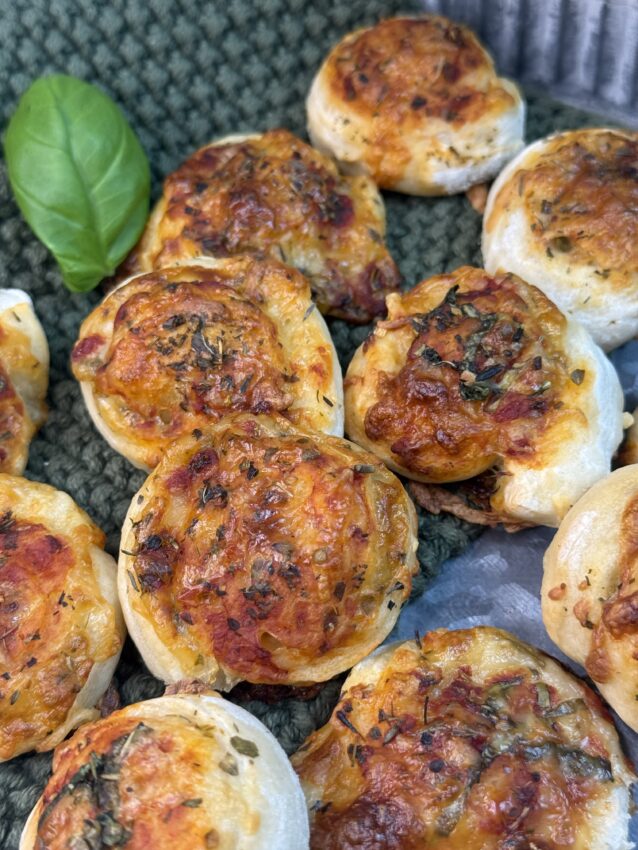 - Pizzaschnecken bei 175 C° ca. 15-20 Minuten goldbraun backen.
