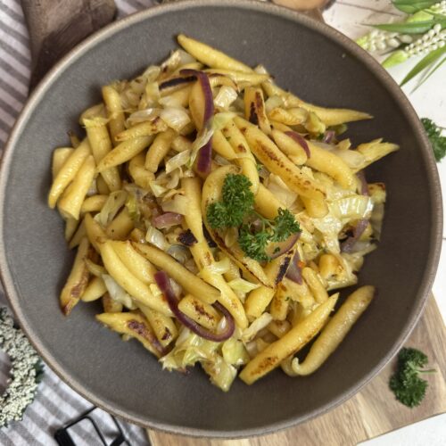 Diese Schupfnudelpfanne mit Spitzkohl ist ein echtes Wohlfühlgericht: goldbraun gebratene Schupfnudeln und ein zarter Spitzkohl. Schnell gemacht, unglaublich lecker und perfekt für die einfache Alltagsküche.