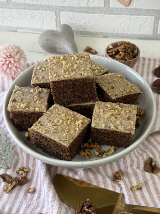 Wenn der Duft von Zimt und frisch gebackenen Nüssen durch die Küche zieht, weiß man: Der Herbst ist angekommen. Diese saftigen Walnuss-Zimt-Schnitten sind ein kleiner Vorgeschmack auf die gemütlichste Zeit des Jahres – nussig, weich, gewürzt und einfach himmlisch zum Kaffee oder Tee. Ein Hauch von Zimt, geröstete Walnüsse und eine Prise Liebe – mehr brauchts gar nicht.