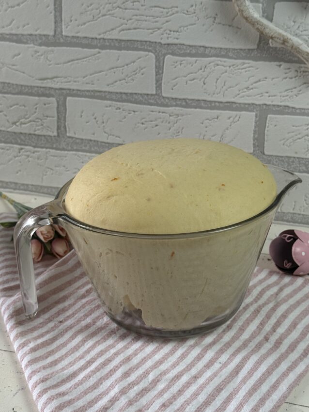 - Den Teig in 8 gleich großen Stücke teilen und rund schleifen, abdecken und 30 Minuten ruhen lassen.