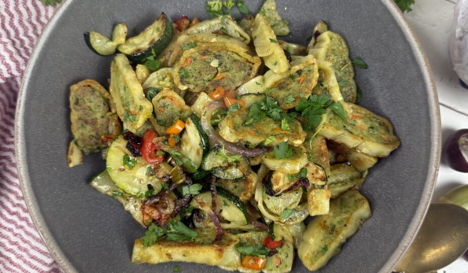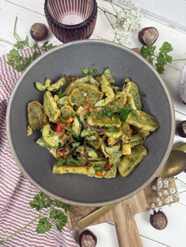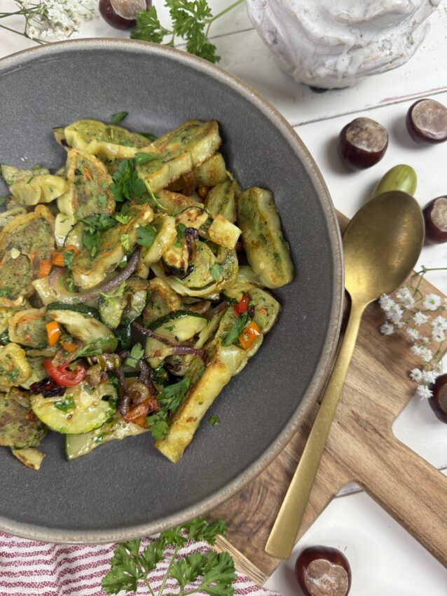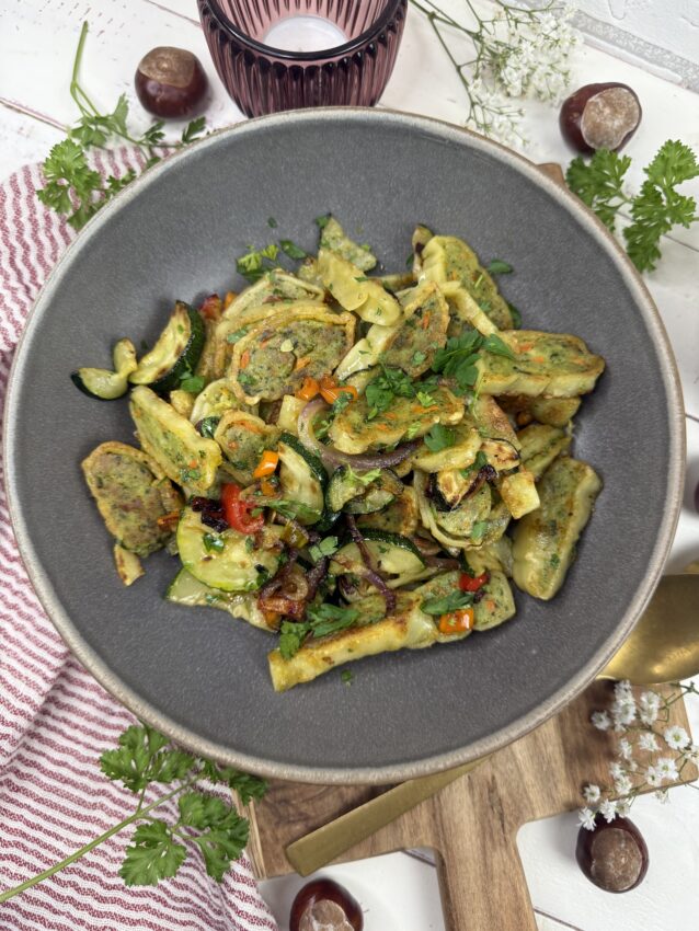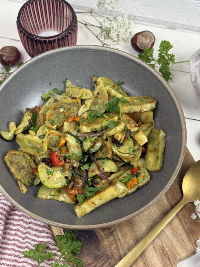 Schwäbisches Soulfood ist diese bunte Gemüsepfanne mit frischen Maultaschen – einfach, herzhaft und richtig gemütlich. Perfekt für den Herbst, wenn es draußen kühler wird. Schnell gemacht, gesund und sättigend – das schmeckt nach Heimat und Wohlfühlen.
