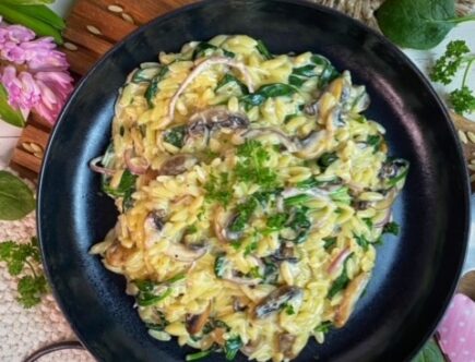 Cremige Champignon-Spinat Orzo-Nudeln
