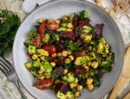 Salat mit roter Beete, Kichererbsen und Paprika