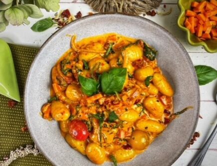 Gnocchi mit Blattspinat und Karottenwürfeln