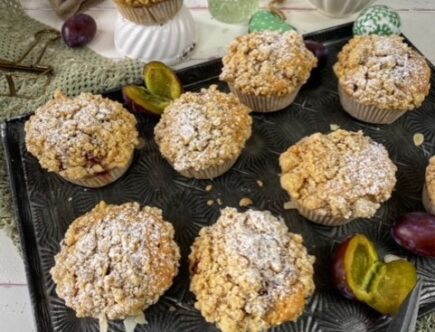 Zwetschgenmuffins mit knusprigen Streuseln